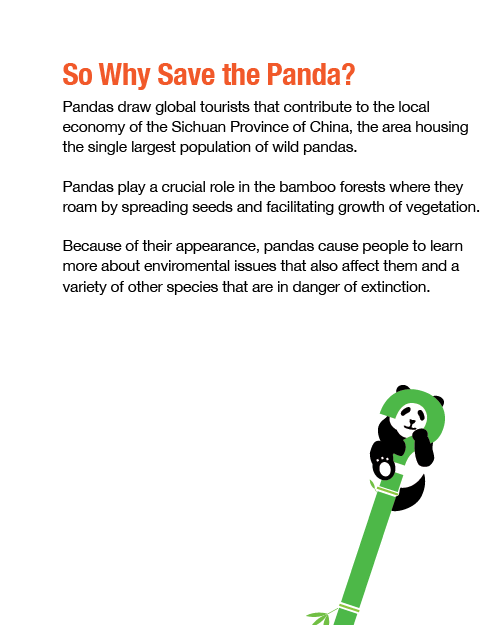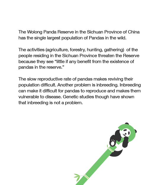 I created a mini campaign for the cause of panda conservation. The issue of panda extinction introduces people to other environmental and ecological issues that might affect them in the next 20 to 30 years.